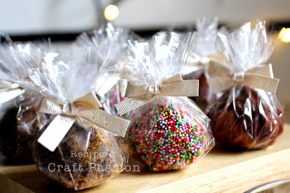 Puedes hacer tus trufas como cakepops sólo ponles un palito de paleta y cubre con papel celofán, cierra la bolsita con un coqueto listón y listo!