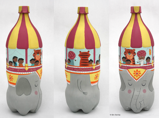 Me encantan sus ilustraciones, son tiernas y divertidas, pero una de sus facetas mas creativas, es donde hace algunos de esos dibujos. Utiliza todo tipo de envases para plasmar diseños caprichosos y divertidos.