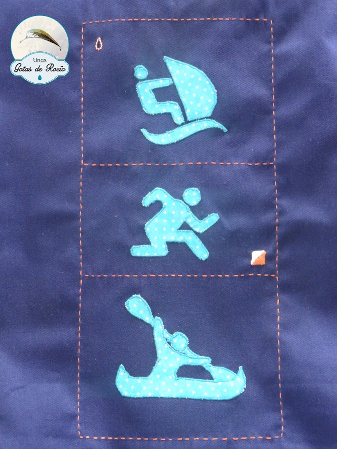 Algunos de sus deportes favoritos representados en su color favorito: la vela, el piragúismo y las carreras de orientación.