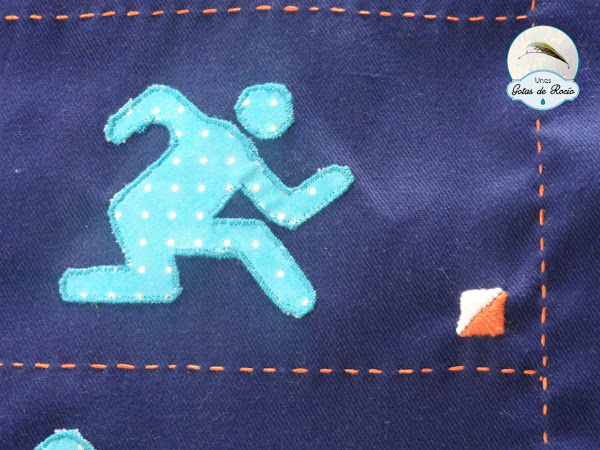 El símbolo de las carreras de orientación finalmente quedó bien bordándolo.
