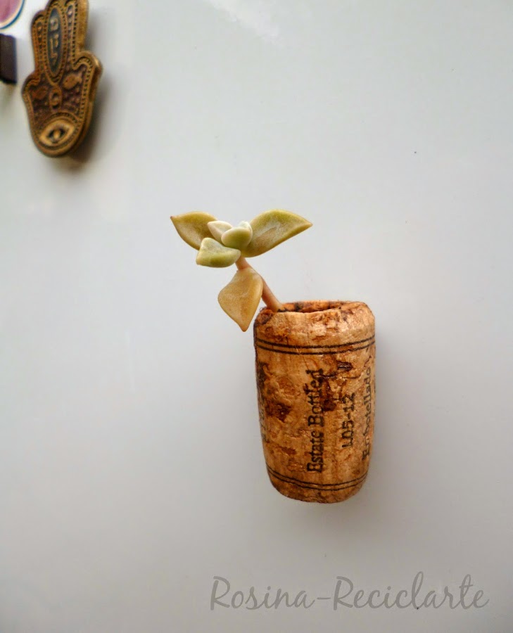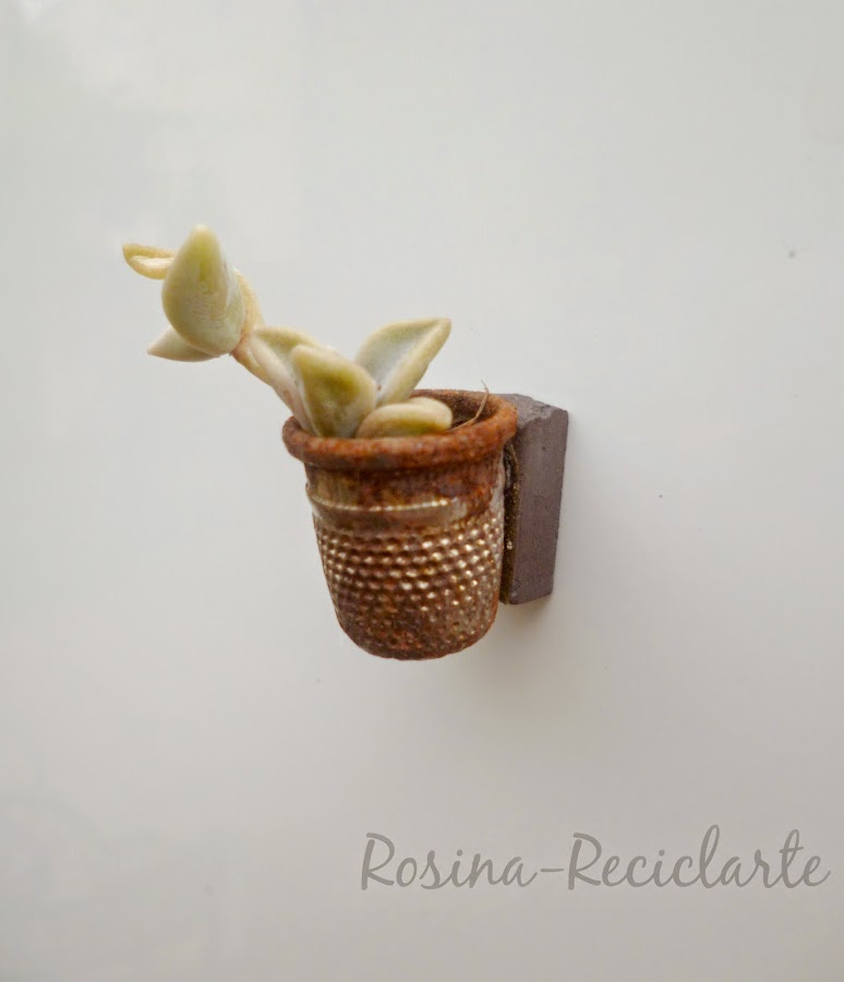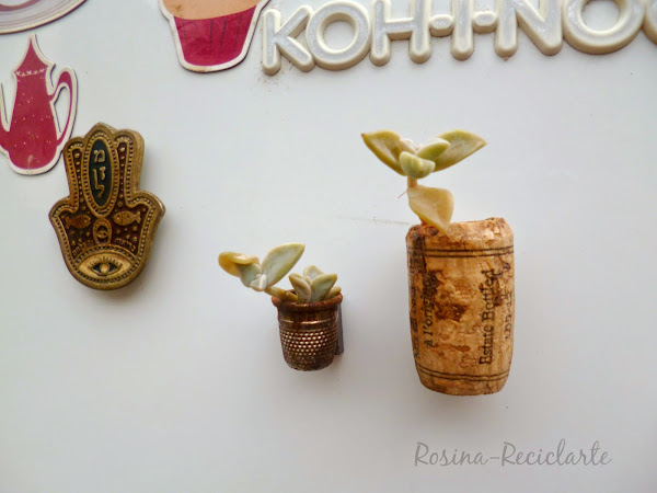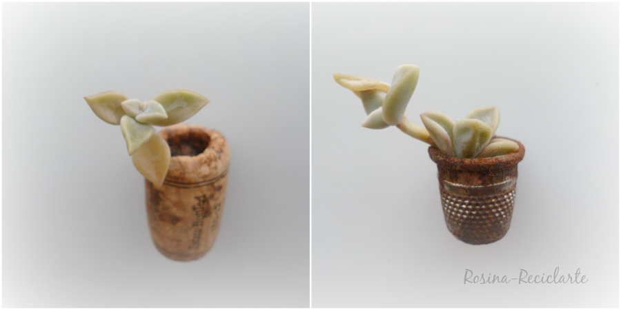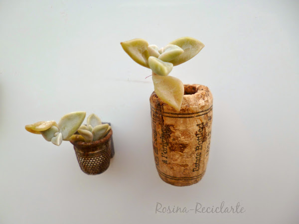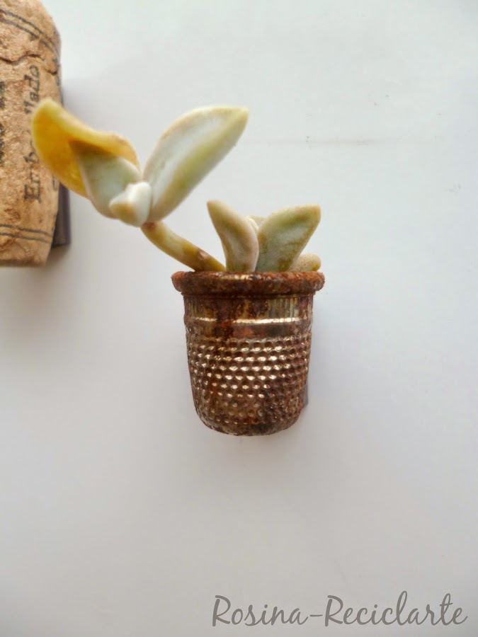 Yo no tenía corchos, pero si dedales que no uso y suculentas que sobran en mi jardín.