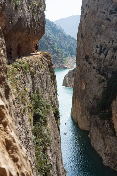 Al día siguiente nos levantamos tirando a tarde, pero decididos a salir a pasear. El pomelo y yo tenemos una amiga de la zona que nos había recomendado la visita al Congost de Mont-Rebei. Yo no estaba muy convencida porque entre mis múltiples errores de funcionamiento tengo un vértigo mortal y estar cerca de cualquier caída libre me paraliza, pero acabó siendo una de las excursiones más bonitas que hemos hecho.