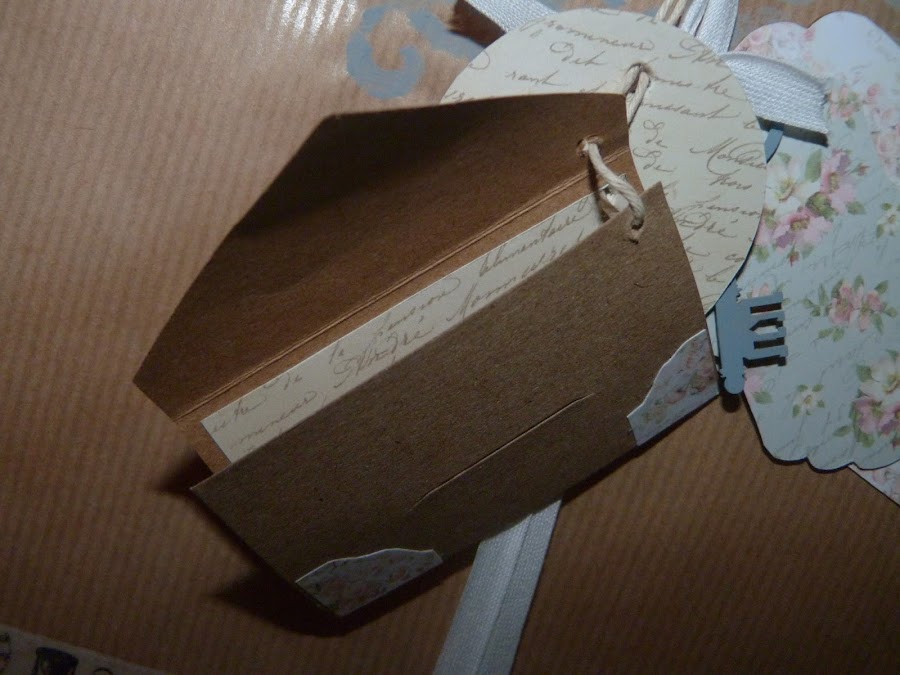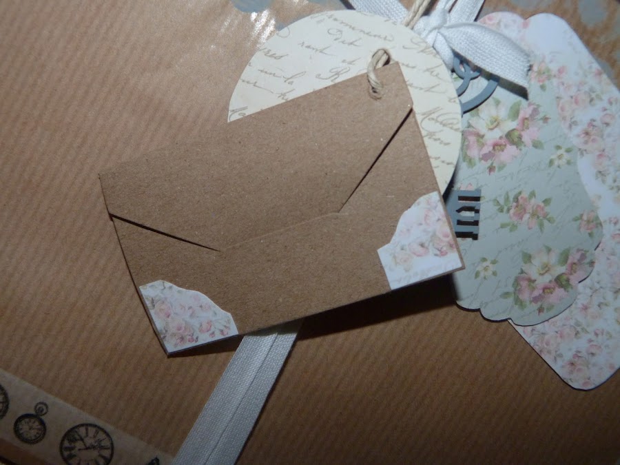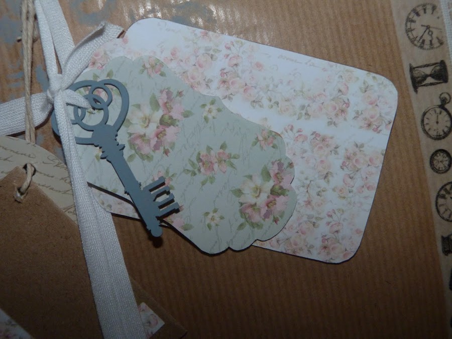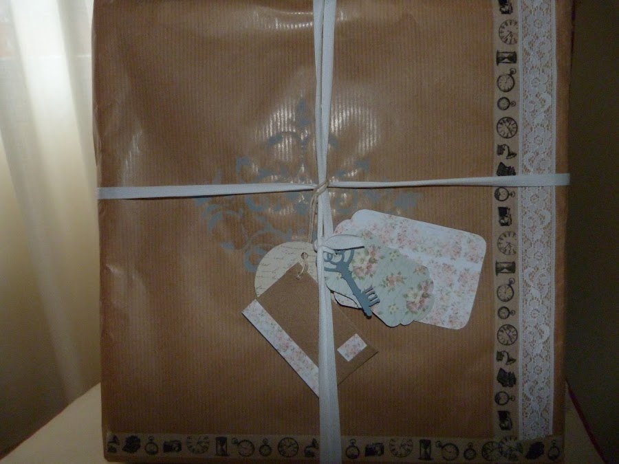 Como me había esmerado un poquito con el empaquetado del conjunto de cocina, el cuadro no podía ser menos!!! Papel kraft estarcido, cintas, etiquetas con distintos papeles de scrap, una llavecita pintada... y un sobrecito con una mensaje.