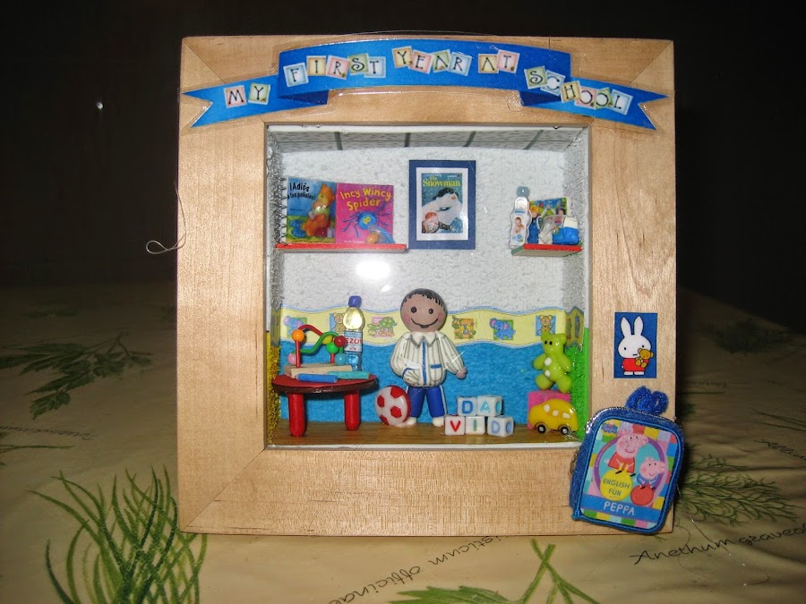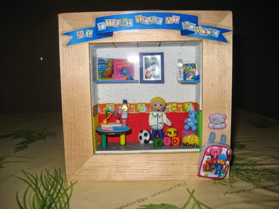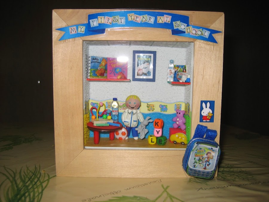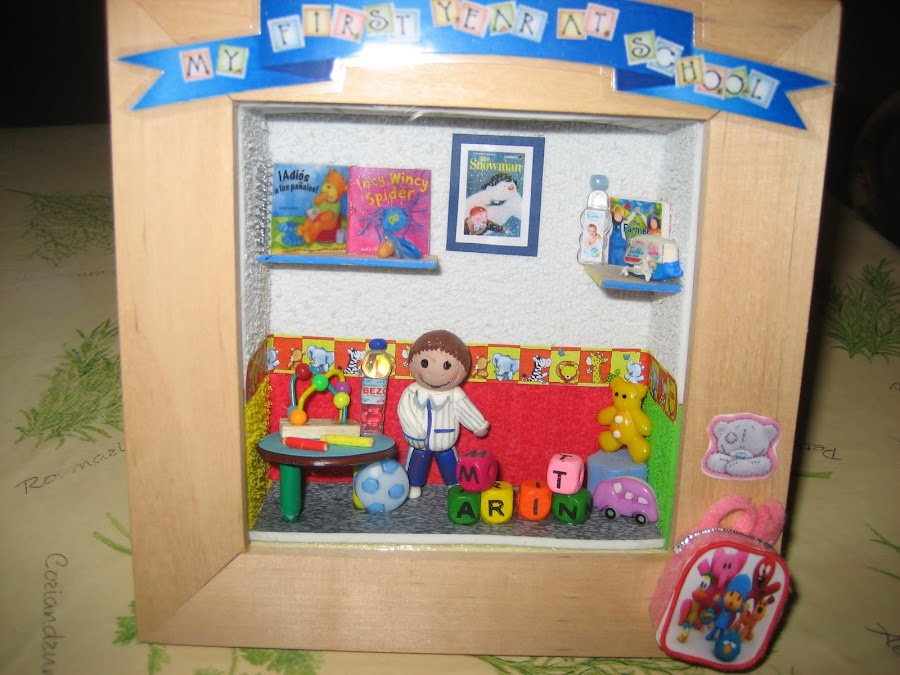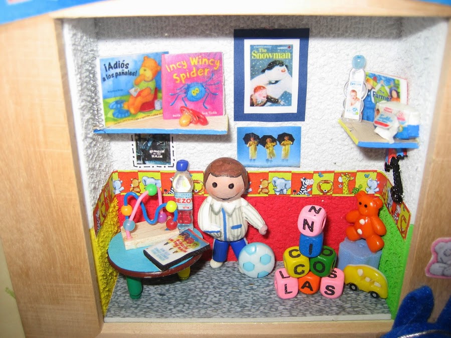 Después de una larga pausa en este blog, vuelvo a la carga. Esta vez con unas escenas en miniatura que he regalado a unos niños de una guardería inglesa. Son dos clases distintas, decoradas con dos cenefas diferentes y dferentes colores en las paredes. El suelo también es distinto en cada clase.