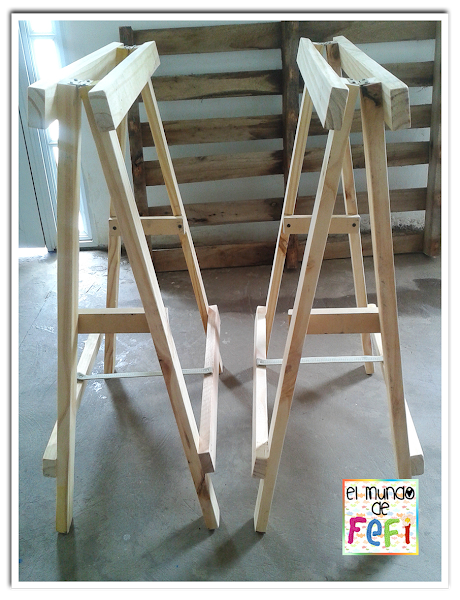 Bien! Le llegó el turno a las patas, para eso compré 2 caballetes, muy económicos, de los mas comunes, le puse una maderita a la mitad para luego poner ahí estantes y a la vez para fijarlos, y asegurarme que no se cierren si se golpean o mueven...