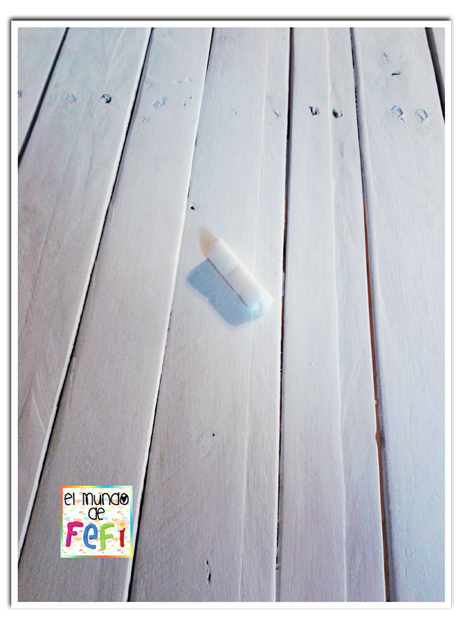 Para el decapado, le froté una vela, de las mas económicas, para que la pintura no se adhiera y sea mas fácil levantarla... Así, libremente, en las zonas donde se quiere el efecto...