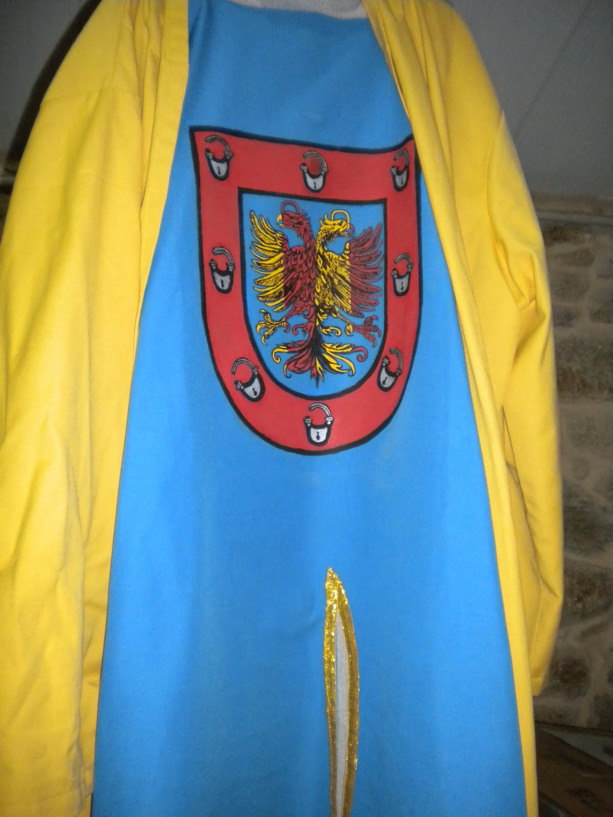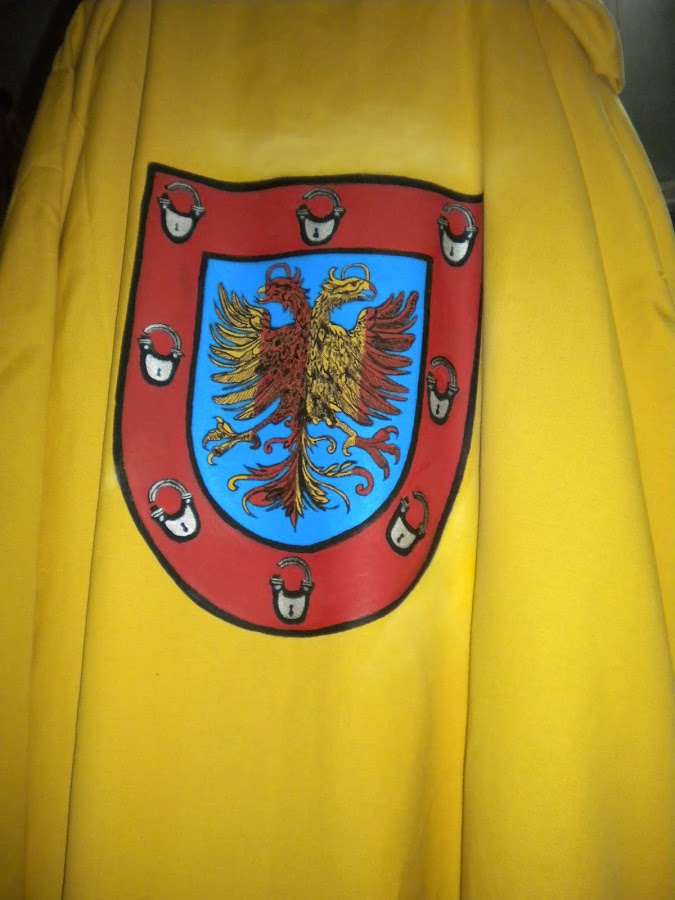 Bueno, pues este es un encargo de un amigo que se dedica a la lucha medieval (como aficción, claro). Ya hace algún tiempo le pinté el escudo (por ahí anda la foto en algún lugar del blog) y ahora quería que le hiciera los escudos que lleva en la ropa.