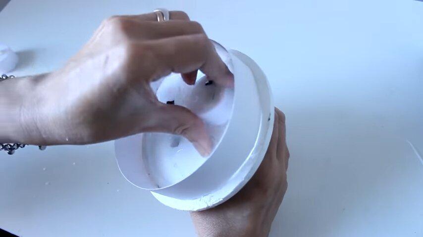 usar boca abajo y para la base tengo esta etapa de telgopor de un envase de helado pero ustedes la pueden reemplazar por otro tipo de tapas o inclusive por un cartón.