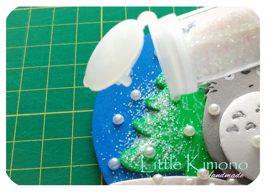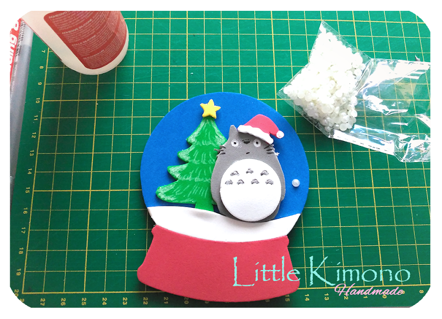 Con el tema se me iluminaron los ojos *_* ya podía pensar en alguna creación navideña para el reto jeje y empecé a buscar proyecto para darle vida con la goma eva... pues os cuento una cosa sobre mi, me encantan las esferas de nieve... sí! esas que traen purpurina o elementos que imitan nieve por dentro y al agitarlas se mueven ^_^ y dije ala! ya tengo proyecto!, sólo me quedaba buscar qué ponía dentro de mi esfera... y como no!? no sería un handmade Little Kimono sin un Totoro ^_^ jiji