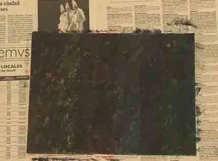 Se pinta el fondo con los colores deseados. Se deja secar esta capa de color. Se pinta después encima con otros colores. Antes de que se seque se empieza a rascar la pintura, que así sale muy fácilmente.