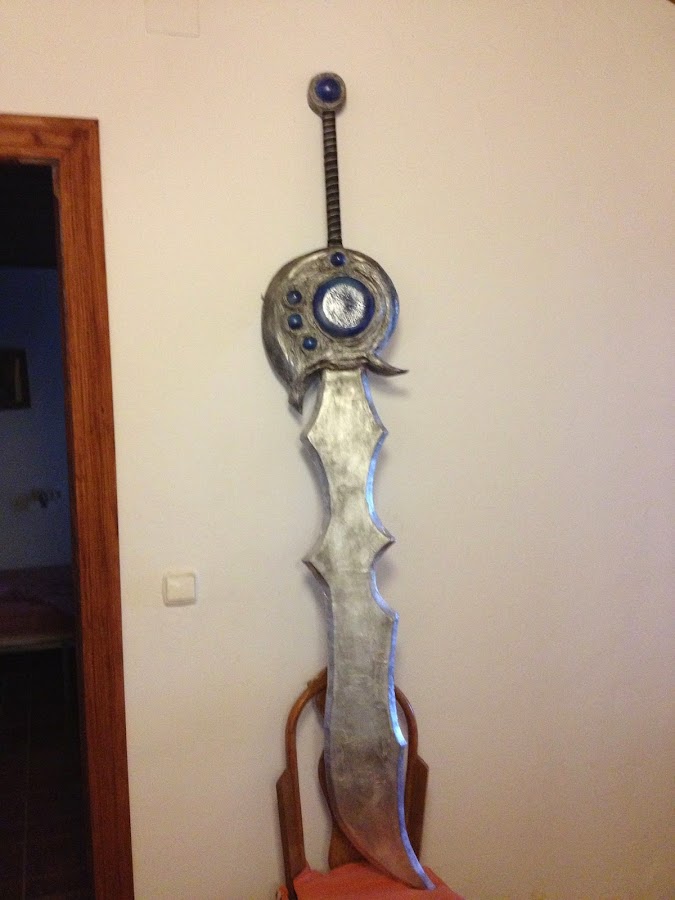 Para que quedara más bonito, con un rotulador permanente plateado he pintado las lineas de la empuñadura, siguiendo el borde de la goma eva.