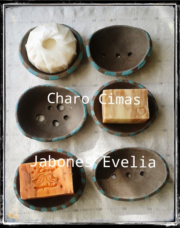 Conjunto de una jabonera de refractario con manganeso a 1.100 º C y engobe turquesa, realizada especialmente para nuestros jabones artesanos por la escultora y ceramista asturiana CHARO CIMAS. Son todas PIEZAS ÚNICAS, firmadas por la autora + un jabón artesano de 100 gr. de cualquiera de las 8 variedades Evelia.
