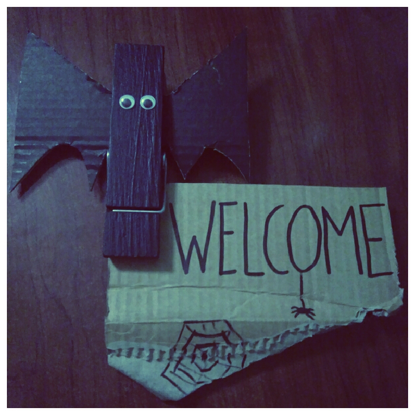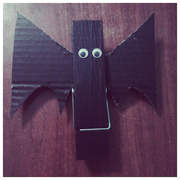 Sólo tienes que recortar la forma de las alas de murciélago en el cartón, pintarlo de negro y pegarlo por la parte interior de la pinza.