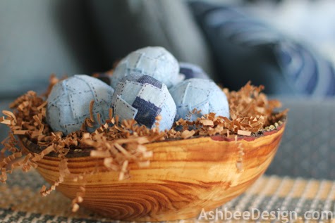 24. Huevos personalizados con trocitos de tela vaquera y Mod Podge vía Ashbee Design