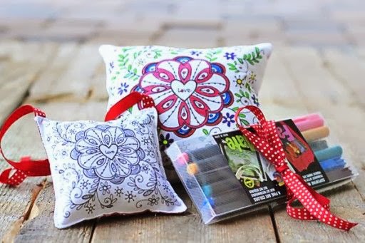 Cojines mini con dibujos pintados y un hueco para dejar una nota vía Lil Blue Boo