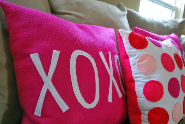 Otro cojín con fieltro vía Just Another Day in Paradise (Aquí Larissa cose las letras a la tela antes de coser el cojín, contrariamente a los dos ejemplos anteriores)