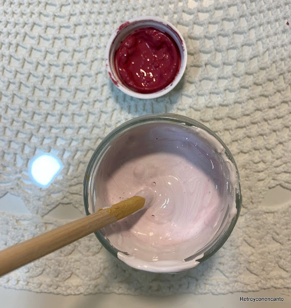 Queríamos pintarlo de color rosa, pero no teníamos por el taller ese tono que imaginábamos en nuestra cabeza, así que fuimos mezclando...,