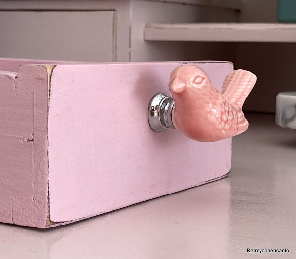 Desde el principio, este coqueto cajón tenía un destino muy concreto; en una de nuestras casas nos venían reclamando, desde hace tiempo, un lugar donde tener los botes de especias a la mano, en vez de guardados en un mueble de la cocina... Hemos estado buscando pequeñas estanterías, armaritos... sin encontrar nada que nos hiciera tilín. Hasta que se nos ocurrió probar con uno de los cajoncitos que nos quedan sin usar...