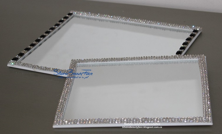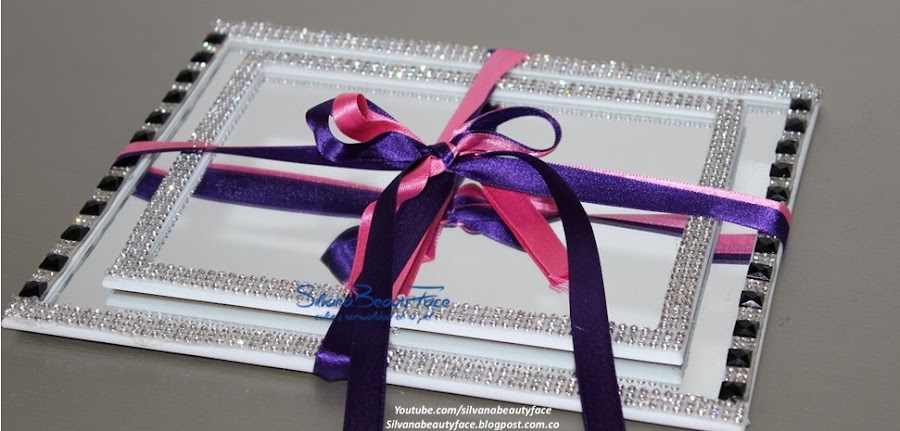 En el primer espejo colocaré dos tipos de cinta con brillantes diferentes, ustedes pueden hacerlo como más les guste.