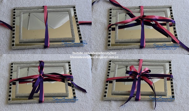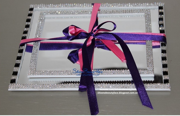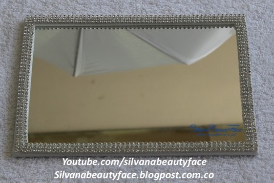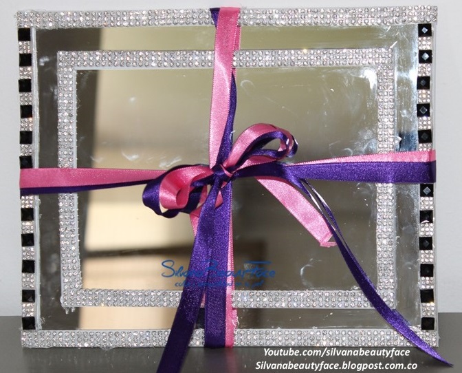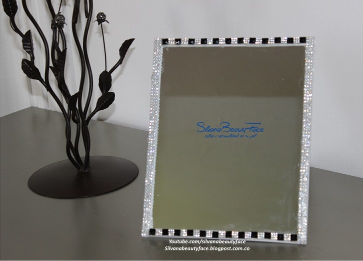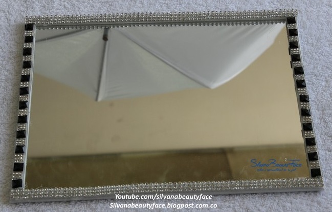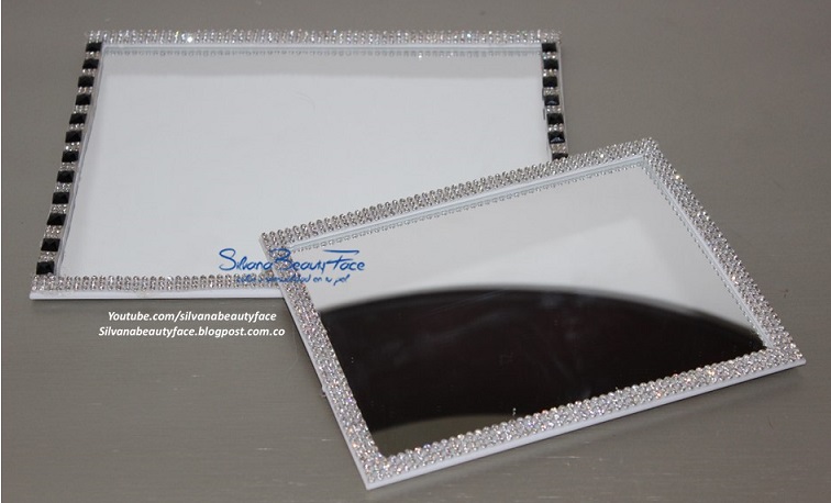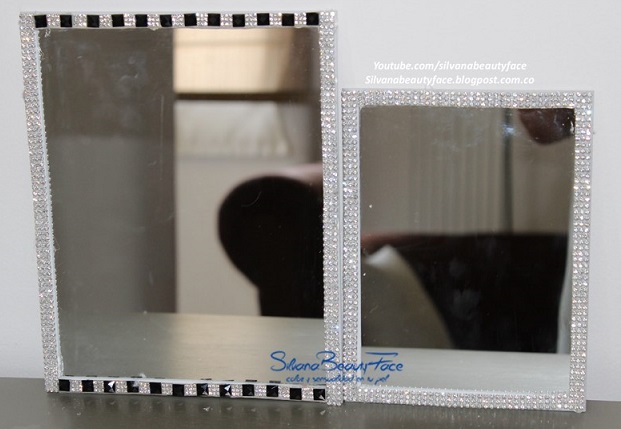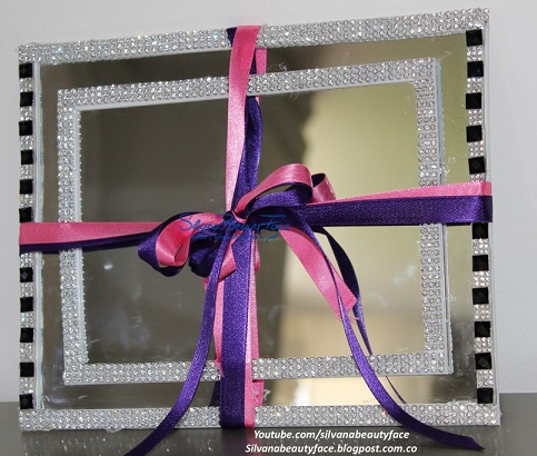 En el segundo espejo, colocaré las cintas con brillantes iguales en los cuatro lados, pues quise jugar con los dos espejos, para que se vieran más bonitos y no fueran monótonos.