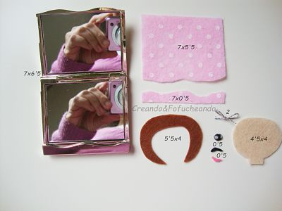 Primero cosemos la cabeza al cachito de Fieltro que hayamos recortao a medida de nuestro espejito.