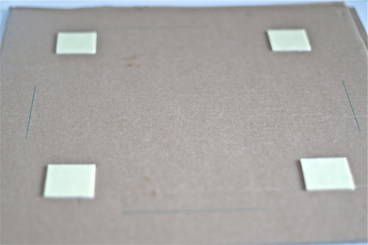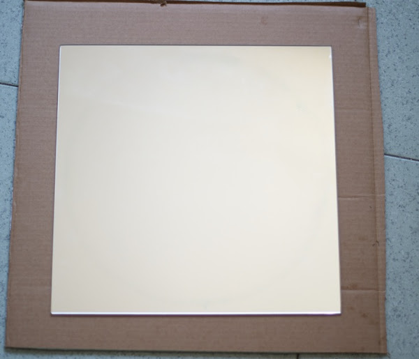 - Pegamos el espejo LOT con la cinta de doble cara que viene incluida, centrándolo en el cuadrado de cartón