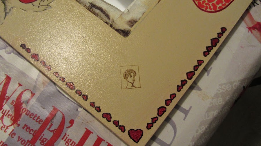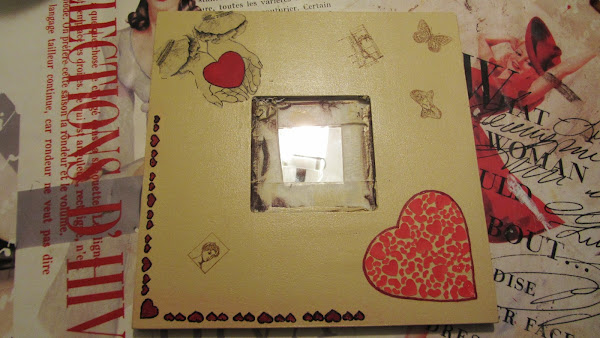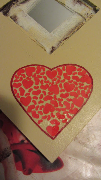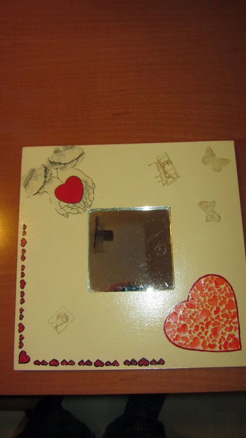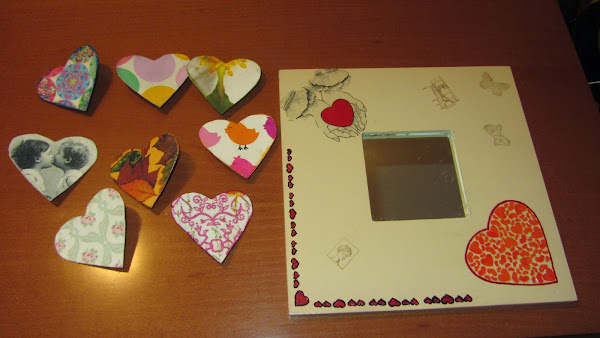 En el intercambio de San Tontín tocaron los corazones, así que yo hice unas pinzas en forma de corazón que aparecen en la entrada anterior y este espejo de Malma, ya famoso en temas de manualidades, creo que Ikea nos debería de dar parte de los beneficios, jeje....