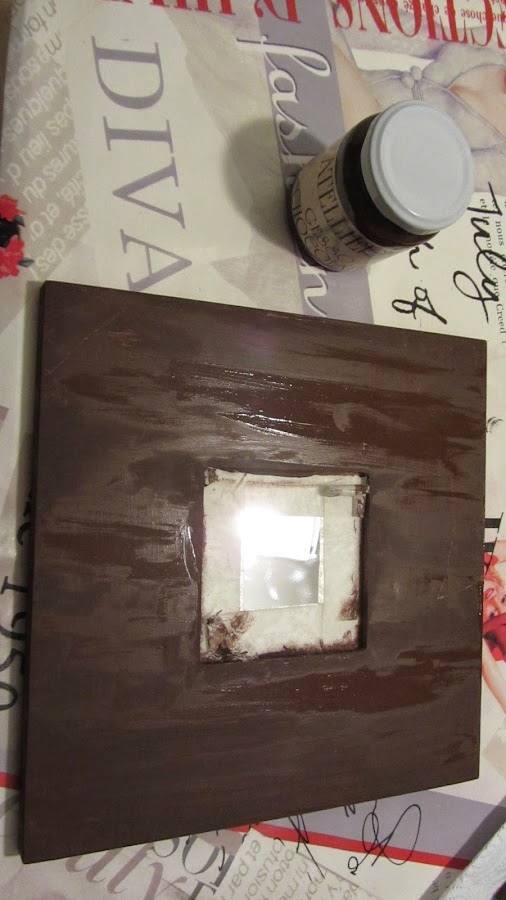 Lo primero poner cinta de carrocero en el espejo para no mancharlo de pintura y a continuación unas manitas de gesso chocolate...