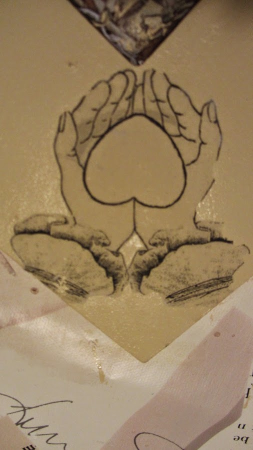 En otra esquina un transfer de unas manos sujetando un corazón que luego pinté de rojo...