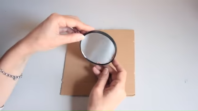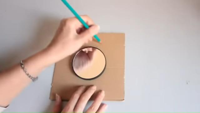 voy a utilizar estas ramitas secas que me quedaron de otros proyectos y tengo este espejito de este tamaño pero puede ser del tamaño que ustedes gusten y además voy a usar este cartón con este grosor le voy a colocar el espejo más o menos en el centro y hacer un círculo a aproximadamente unos dos centímetros todo alrededor después lo voy a recortar y con silicona caliente lo voy a fijar bien