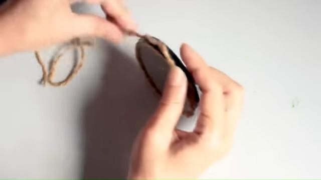 en la parte de atrás le voy a pegar un pedacito de hilo de yute también para poder colgarlo en la pared