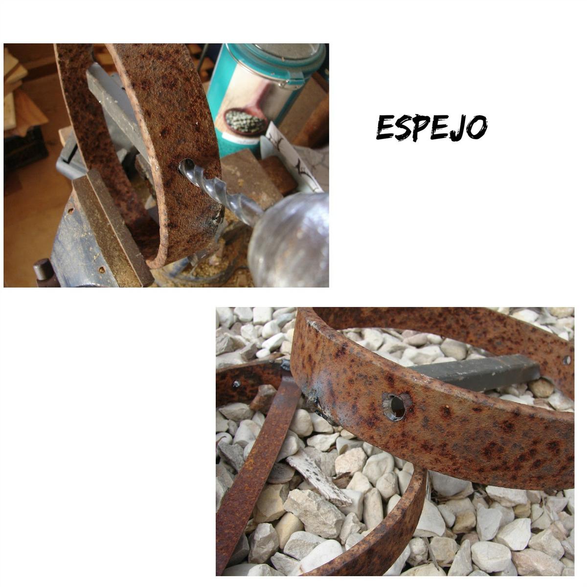 Era un aro y el espejo más pequeño ?.tuve que soldar una barrita de hierro en el centro?.