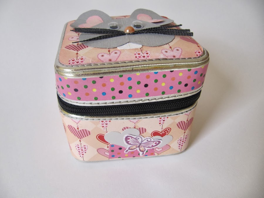 Rebuscando entre las cosas que tengo guardadas, esas que pensamos que podemos utilizar o reciclar algún día (creo que toda scrapera sabe de lo que estoy hablando), escogí una cajita de alguna joya con cremallera