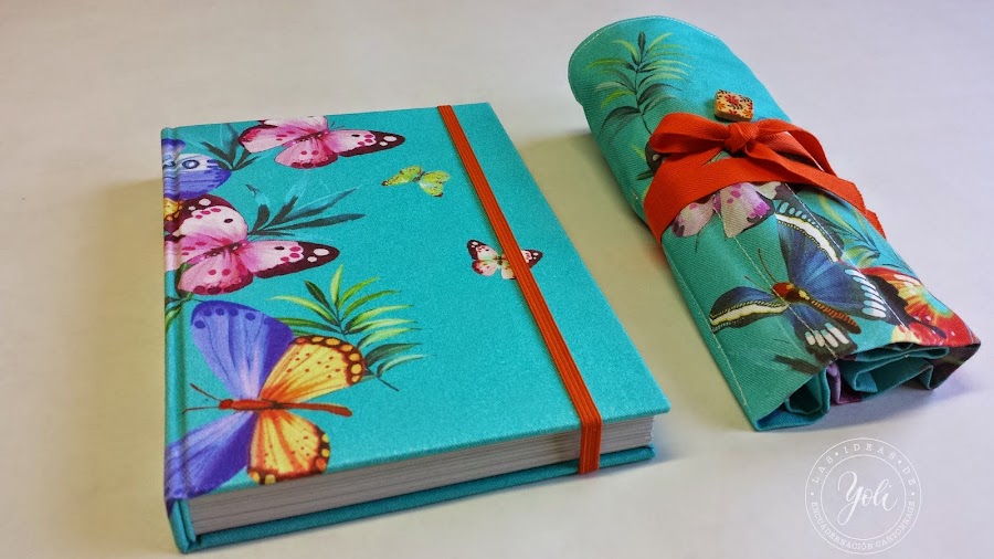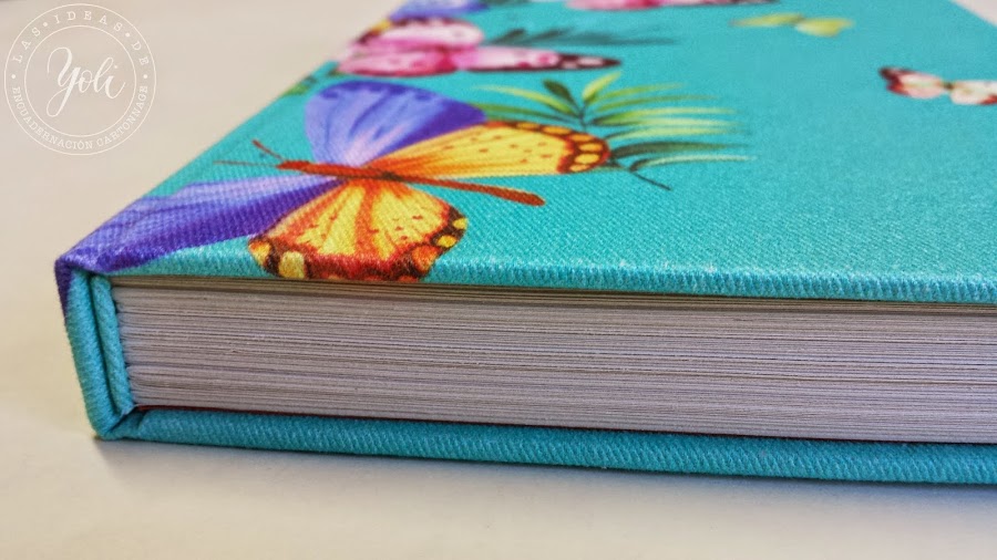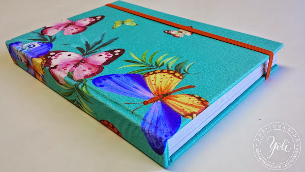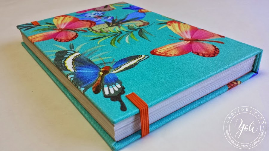 El cuerpo del cuaderno está realizado con papel reciclado y las cabezadas están hechas a mano con la misma tela, finalmente lo encuaderné con esta servilleta tan bonita.