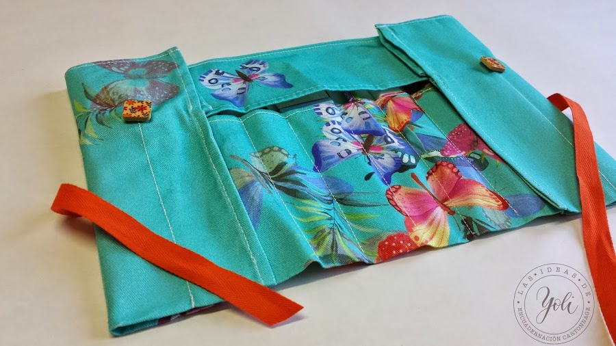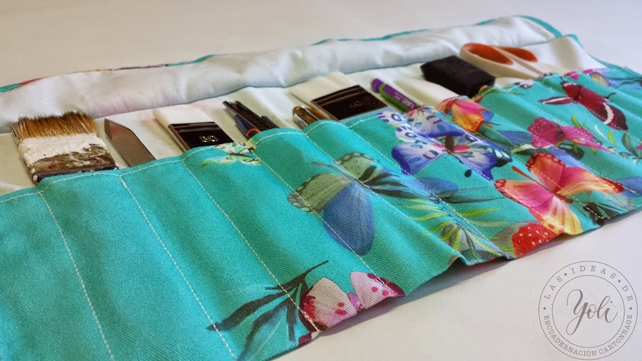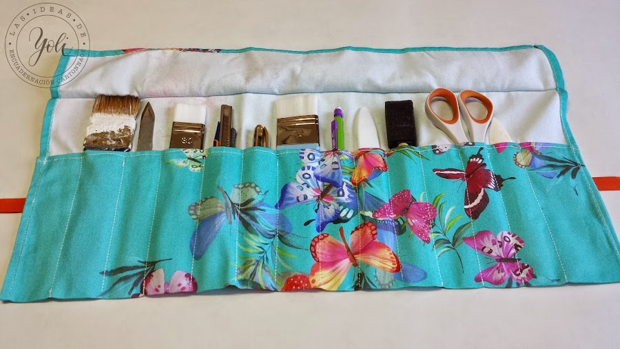 En una entrada anterior Porta plumas, hice un estuche para mis plumas de caligrafía y este me servirá para transportar las herramientas básicas para la encuadernación y el cartonnage.