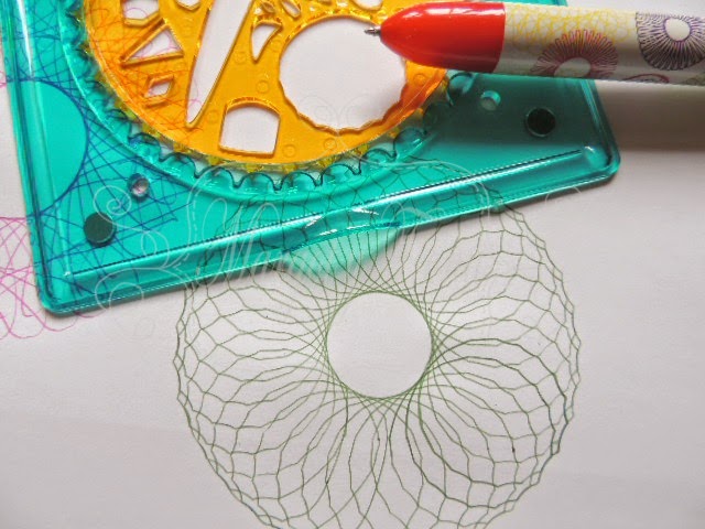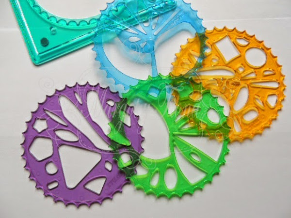 Y las plantillas con diferentes formas, que se coloca en la parte interior de la base y con la ayuda de unas muescas, van girando sobre si misma creando el dibujo en sí.