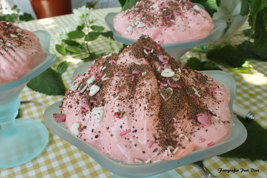 Hoy Domingo y con la calor que se empieza a notar ya...apetecia algo de postre fresquito...¡pues os recomiendo esta receta que lleva pocos ingredientes y fresitas...ummm y esta de chuparse los dedos y muy fresquita, debe tomarse nada mas hacerla...aunque la realizé con la thermomix 31 la puedes hacer con batidora o con lo que tengas...
