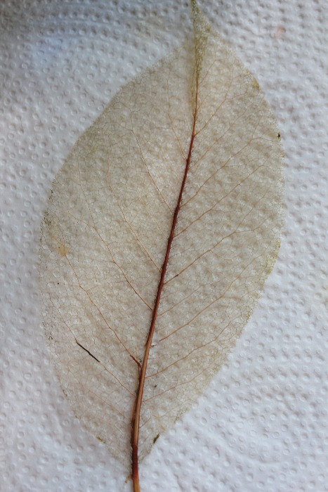 Hace mucho que veo estas hojas a las que se les ve sólo sus nervaduras... (a veces las he encontrado en la naturaleza), y me preguntaba siempre cómo se podrían hacer...