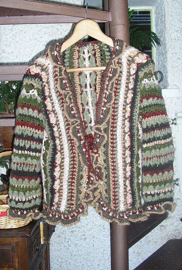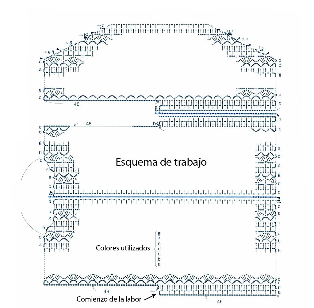 Como se puede ver seguí el modelo inicial pero adaptando los colores que yo tenía y también cambié el colorido en las mangas y queda muy bien.