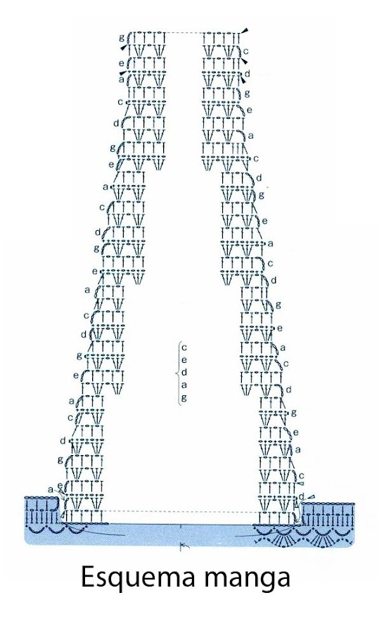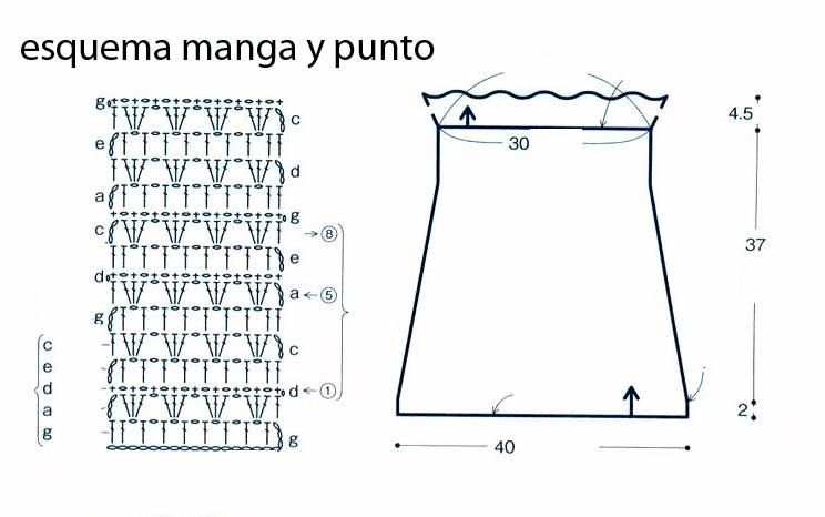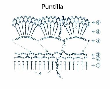 Y este es el esquema de la puntilla. Yo solo tejí una vuelta al final (número 6), me pareció de sobra, y con sobras terminé la chaqueta.