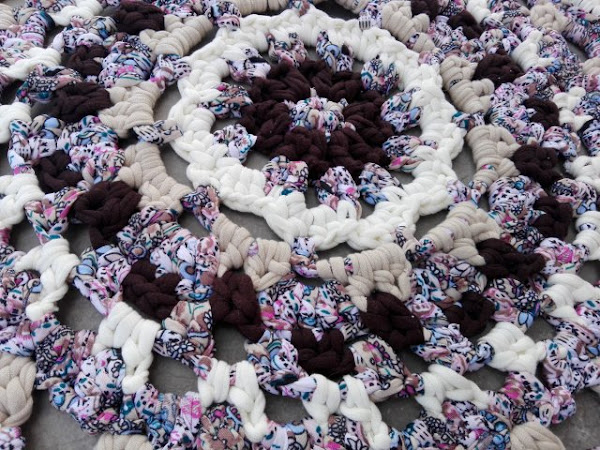 Si algo me gusta del trapillo es que es tan fácil de tejer y se avanza rapidísimo! Al final modifiqué un poquitín el diseño que nos dieron para este reto en el grupo de Facebook "Comunidad Tejemanía" agregando flecos y cambié los tonos a unos mas discretos.