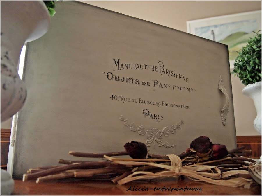 Ya he hecho unos cuantos pero la diferencia de éste es que va decorado con transfer con la técnica de la acetona, que muchas ya conoceréis. Me ha gustado esta técnica porque, a diferencia del latex, éste queda más difuso y menos perfecto, vamos que si lo que se quiere es que tenga un aire envejecido y vintage, este método es perfecto.