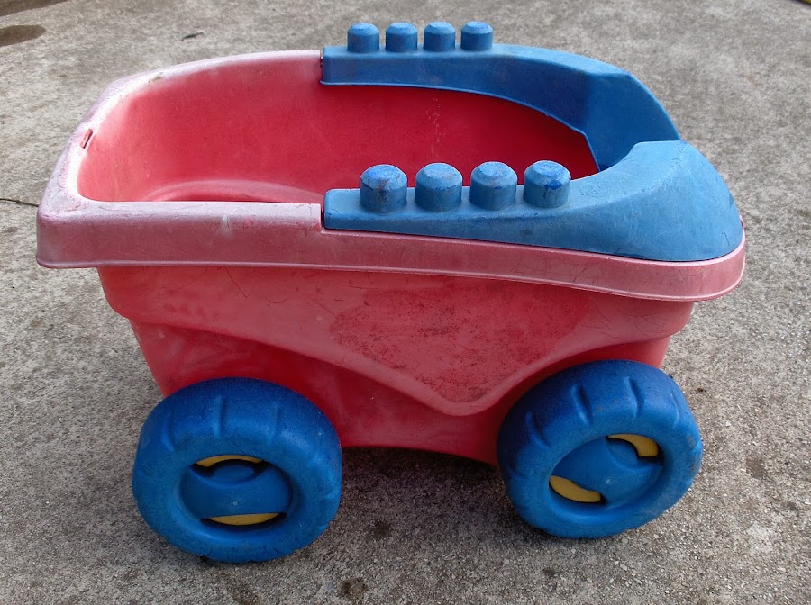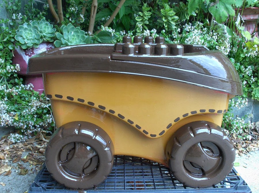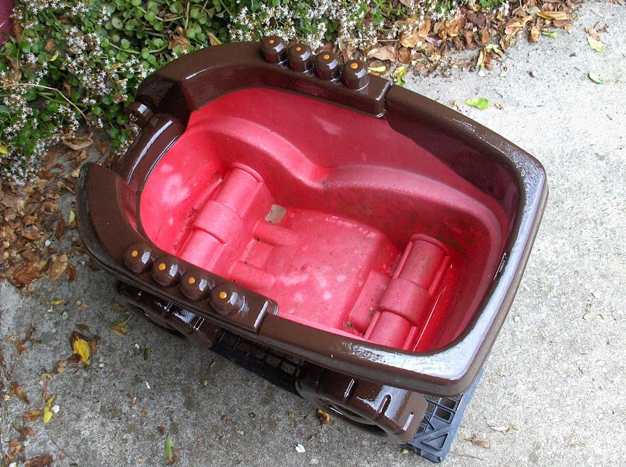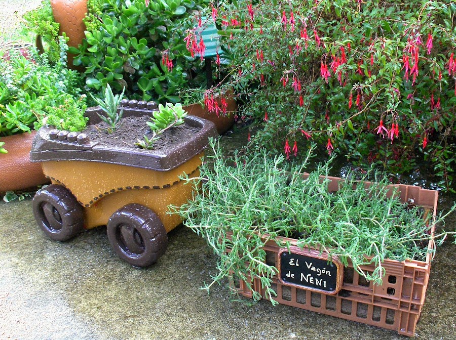 ni siquiera estaba junto al contenedor de plásticos .... no lo pude resistir.... me lo traje (aunque la primera intención era hacer 4 macetas con las 4 ruedecillas), pero las cosas no son como empiezan, jajaja, son como acaban