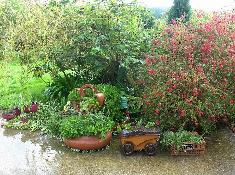 y lo de siempre, una buena limpieza, agujeros para drenaje, pintura esmalte, casi llevó una carretilla de tierra, sucus......... y listo !!!