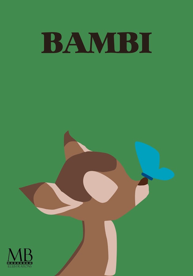¡Hola a todos! Debo de admitir que he estado muy muy pero que muy perdida últimamente (y con últimamente englobo meses y meses). Y es que el curso ha comenzado de una manera muy chunga, que a penas he tenido tiempo de hacer nada. Y encima tengo otras muchas cosas que hacer (hobbies nuevos, supongo). Pero no os preocupes que una de las cosas que he decidido hacer es retomar el blog, porque lo hecho de menos. Durante mi ausencia he hecho cositas también que os iré enseñando poco a poco, en mis ratos libres. También estoy pendiente al diseño, pero eso ya con tiempo se irá modificando. Bueno, esta entrada es básicamente para deciros que he vuelto y que intentaré actualizar el blog más a menudo si me da tiempo hacer manualidades, y si no pues con fotografías, ilustraciones y otras muchas cosas que también suelo hacer. Os dejo con la última ilustración que hice para una práctica de clase. Es una ilustración minimalista de Bambi. La verdad es que estoy satisfecha con el resultado, aunque no soy muy fan del minimalismo jajaja.