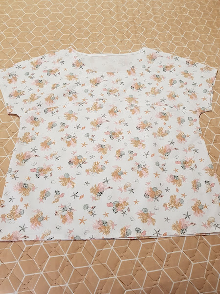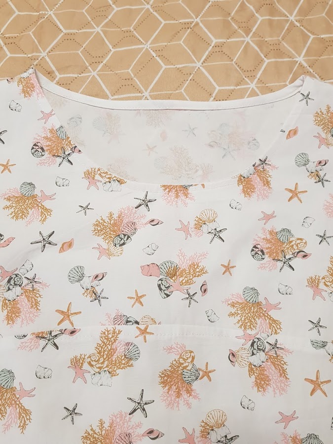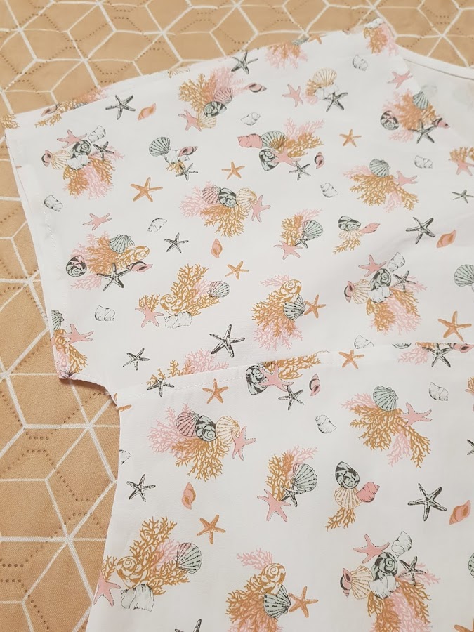 Cuando vi esta tela con estampado marimo ( estrellas de mar , caracolas , corales......) en la tienda donde suelo comprar mis telas no me pude resistir y compre unos metros para coser .