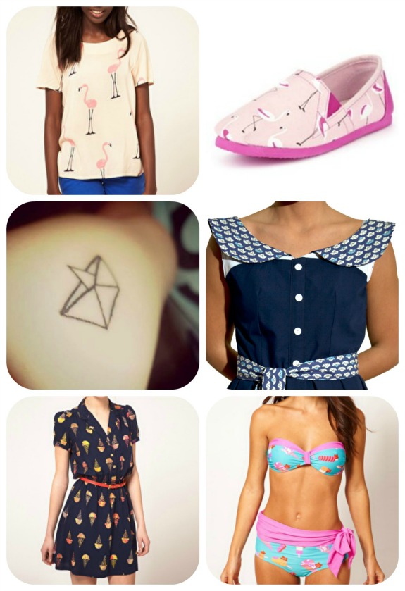 Y luego, otra de las cosas que nos recuerdan al verano y que nos encanta usar durante estas fechas son los estampados con flamencos, barcos de papel y helados. Nos vuelven locas!!!!