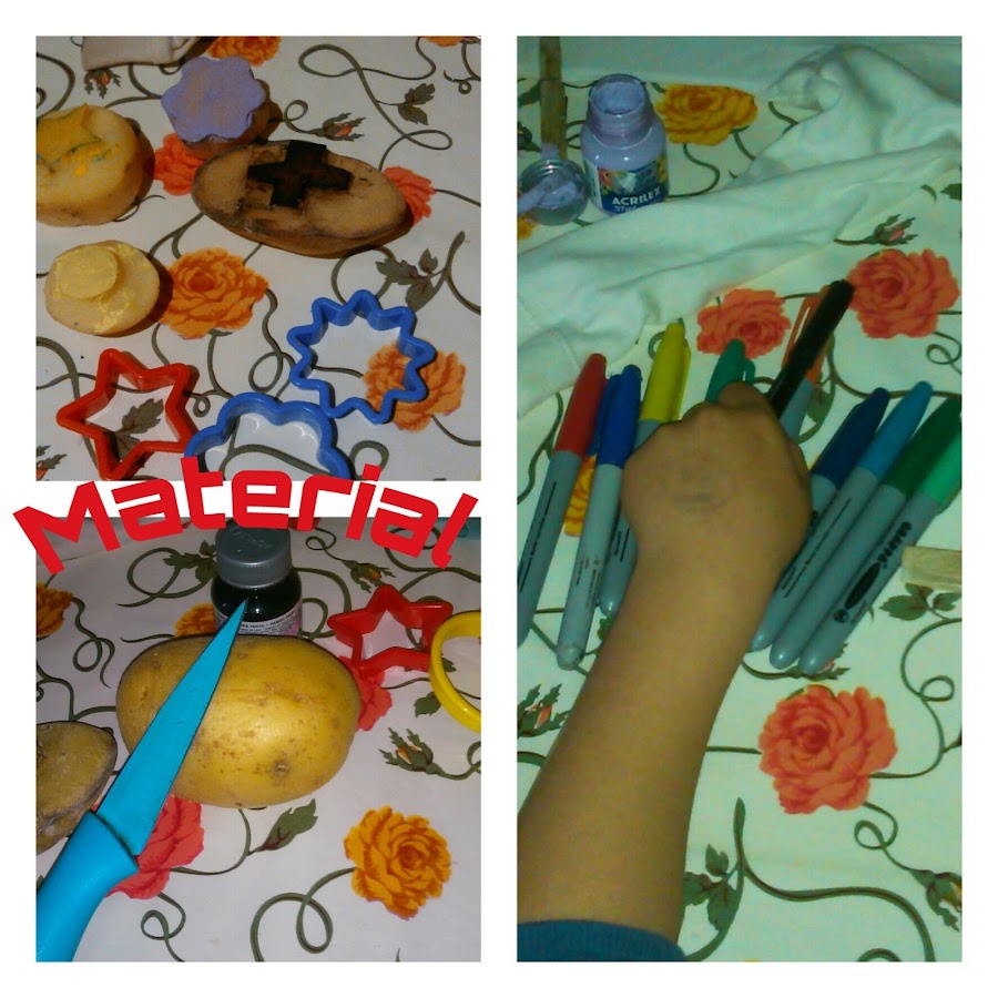 Empezamos con unas divertidas camisetas que nos hicimos estampando con patata.