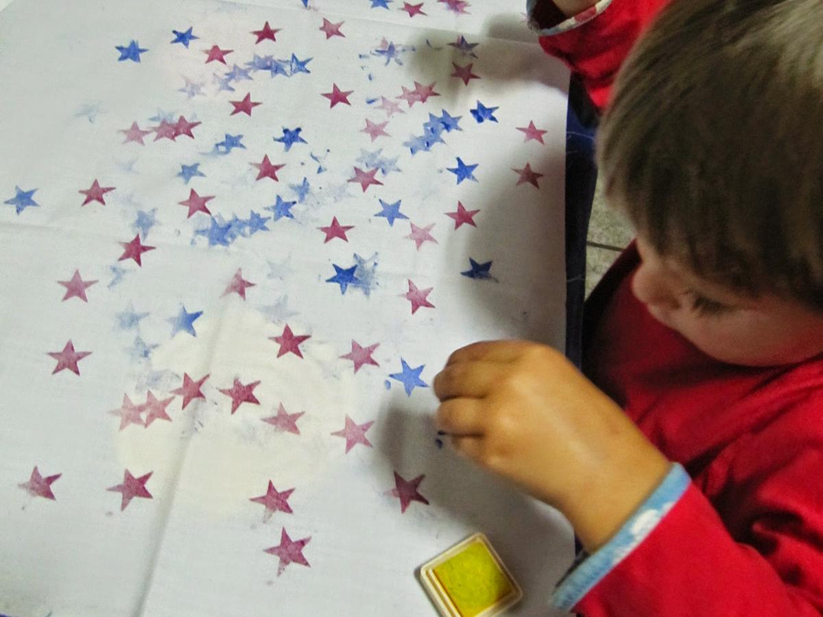 Eso es lo que hicimos hace unos días mi niño y yo. Además de crear una tela única, personal... pasamos una tarde en grande.