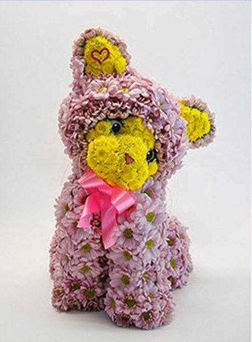 Estos animalitos se han hecho con flores naturales,pero es fácil hacerlo con artificiales.No es más que hacer un esqueleto en alambre del animal que queramos y recubrirlo de rejilla,por los agujeros de la cual,puedan entrar los tallos de las flores ,e ir poniendo una a una hasta completar nuestro arreglo floral.